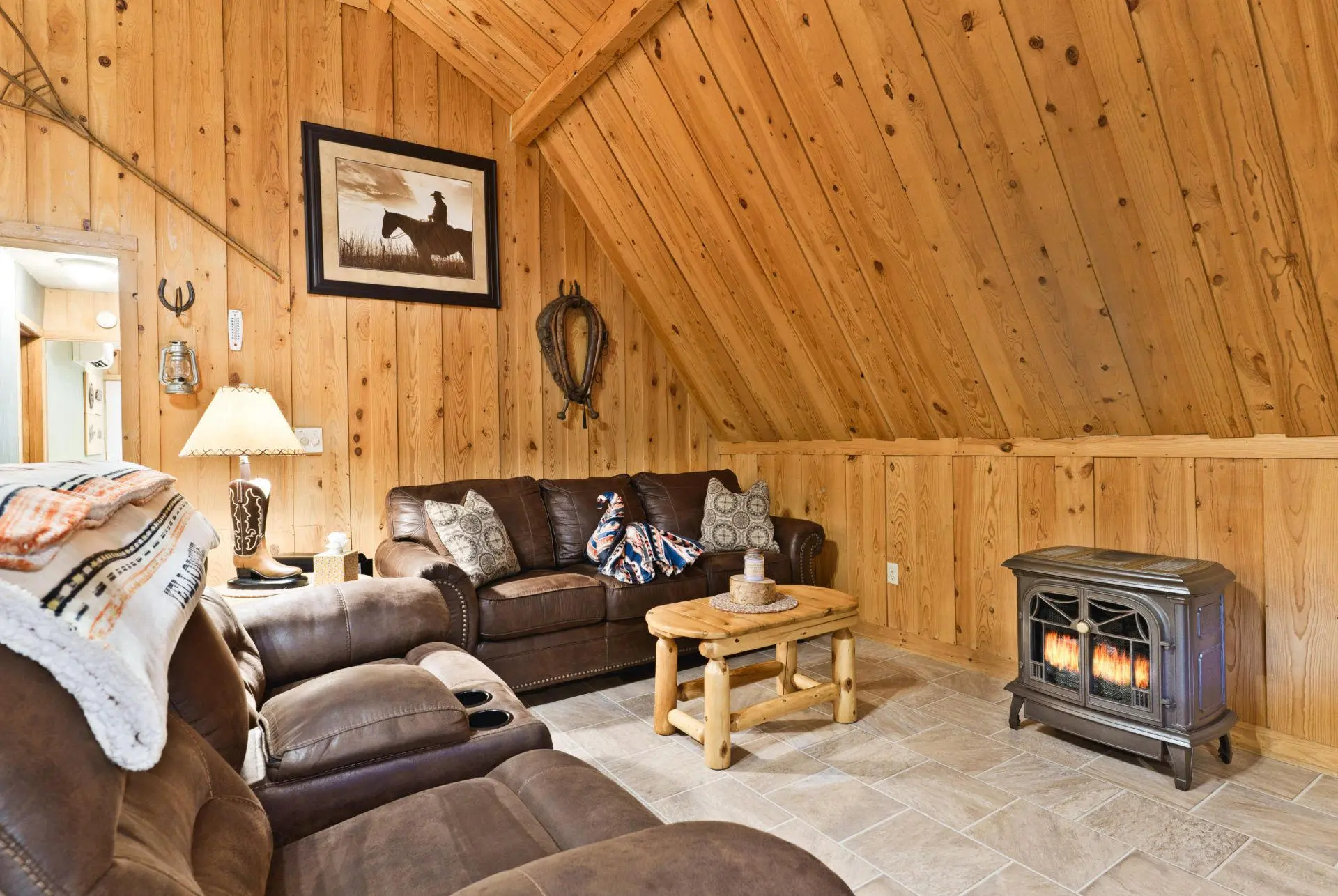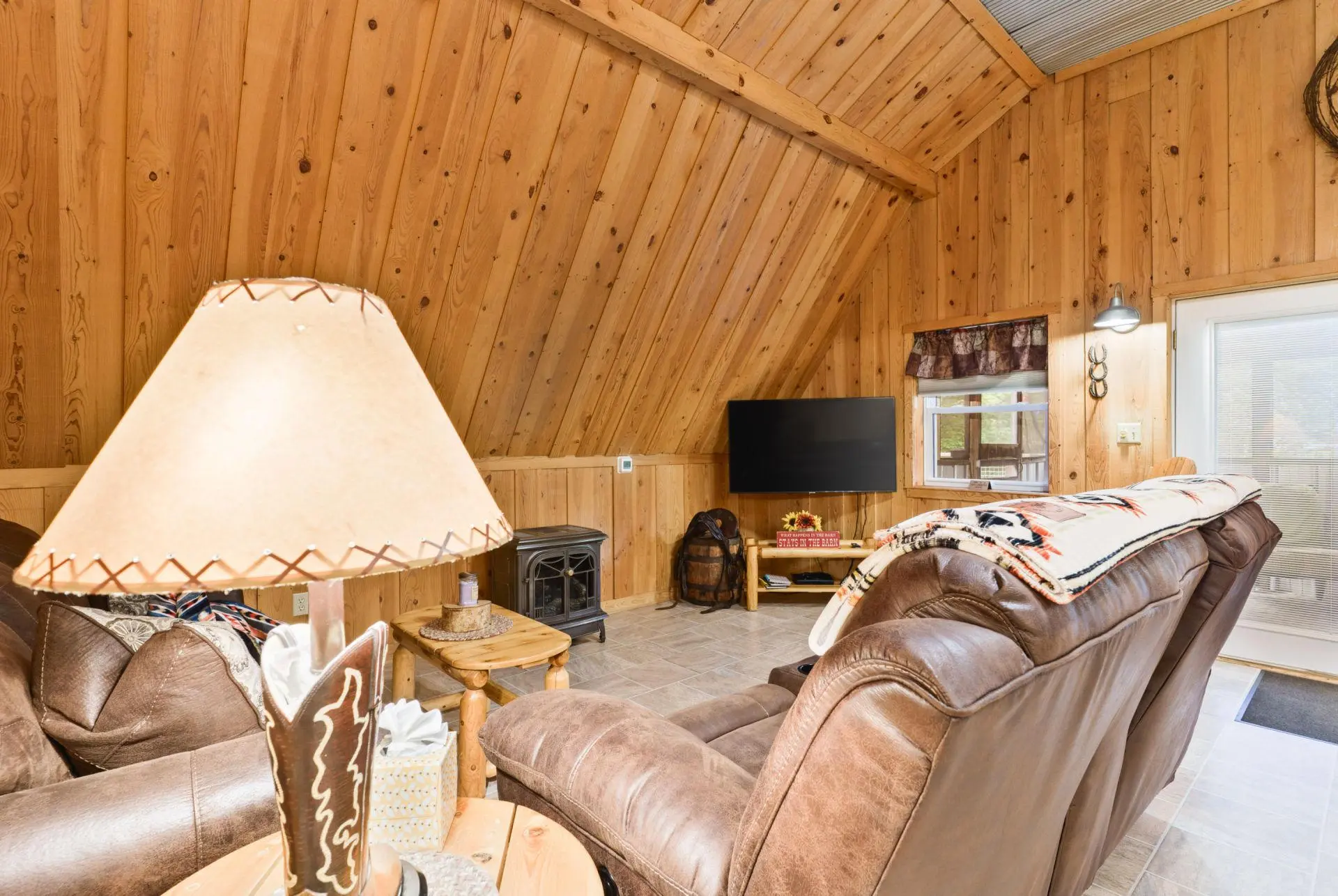 Located on the edge of the pine stand that shelters the rest of our cozy log cabins, the Hitchin Post Lodge was named by our long-time returning guests. From the elevated screen-in deck and lounge, you can sit and relax in the breathtaking view of the forest and valleys found in the Hocking Hills region.