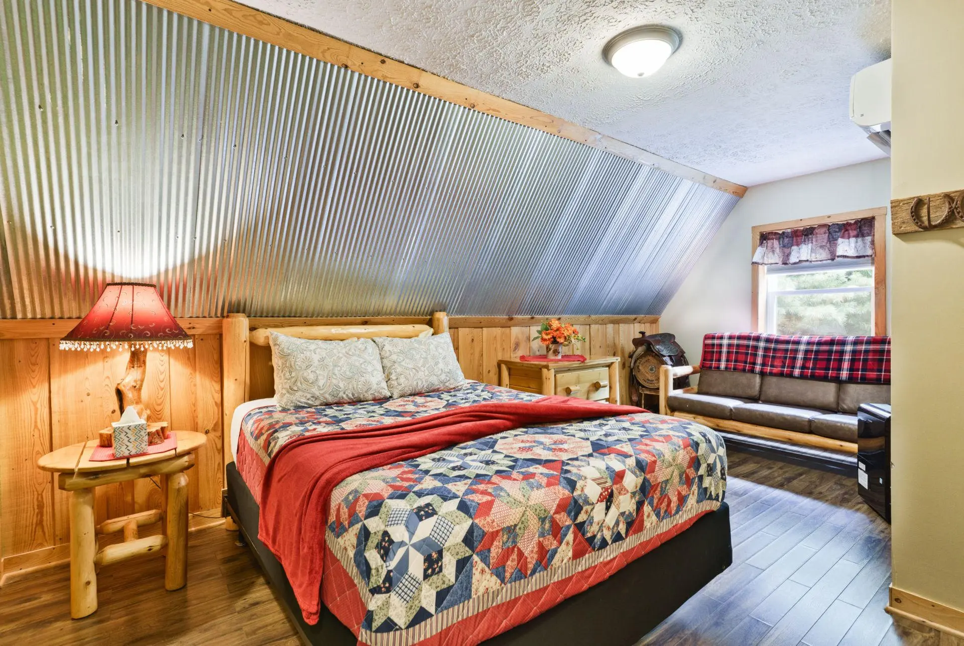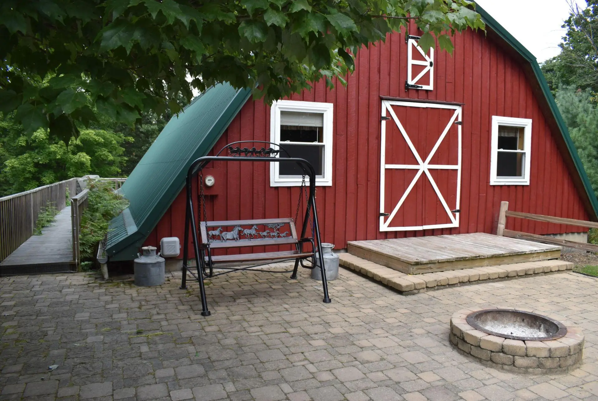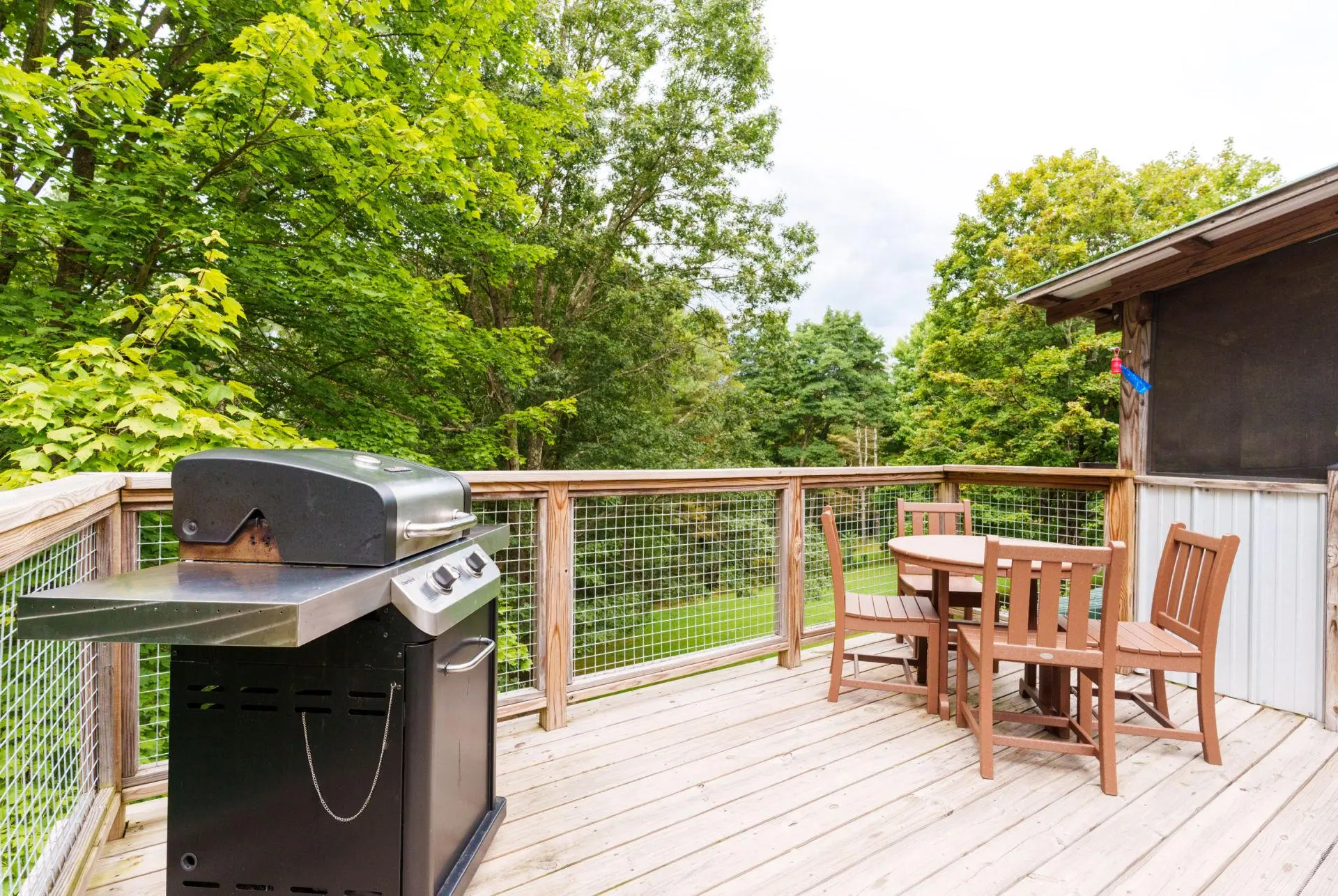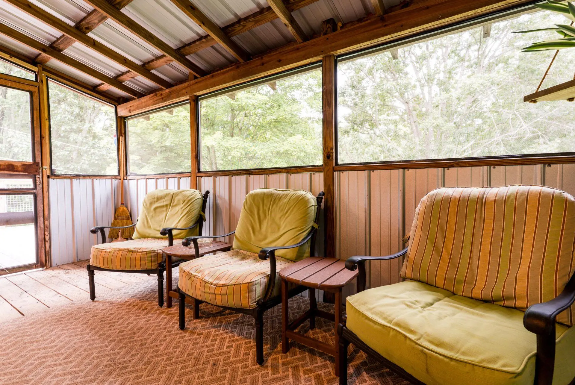 Most of the log furnishings in the Hitchin’ Post come from local artisans in nearby Jackson, Ohio. Enjoy the quiet beauty visible from the 2 covered, screened-in porches where you can lounge in all weather conditions.